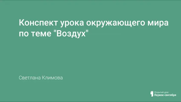 На уроке окружающего мира во 2-м классе по теме «Воздух» продолжается формирование представлений о воздухе, его составе, значении для растений, животных и человека, основных причинах и последствиях загрязнения воздуха, важнейших мерах по его охране.