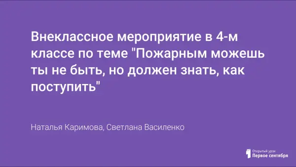 Внеклассное мероприятие в 4-м классе по теме "Пожарным можешь ты не быть, но должен знать, как поступить"