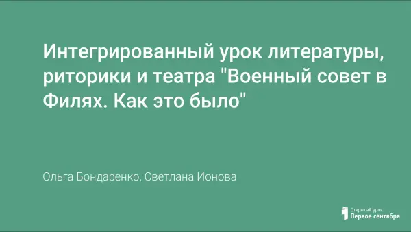 Интегрированный урок литературы, риторики и театра "Военный совет в Филях. Как это было"