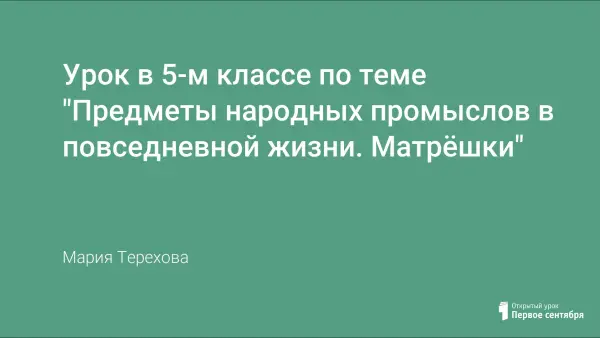 Урок в 5-м классе по теме "Предметы народных промыслов в повседневной жизни. Матрёшки"