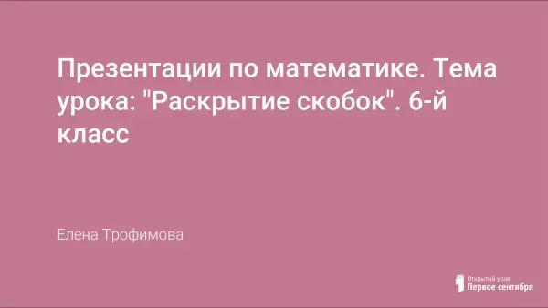Отрабатывается тема "Раскрытие скобок". Учащиеся вспоминают правила раскрытия скобок и формулируют правила в случае, когда перед скобкой стоит знак "–" или "+".