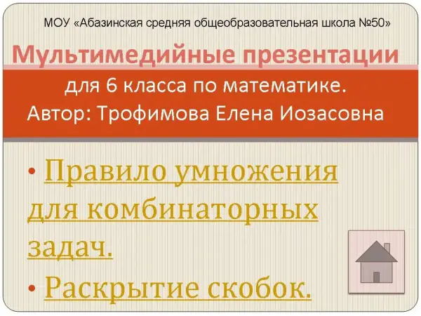 Традиционный урок изучения нового материала по теме. В эту же работу включены разработанные мультимедийные презентации по темам «Деление», «Порядок выполнения действий», «Формулы», «Площадь. Формулы площади прямоугольника и квадрата» для 5-го класса.