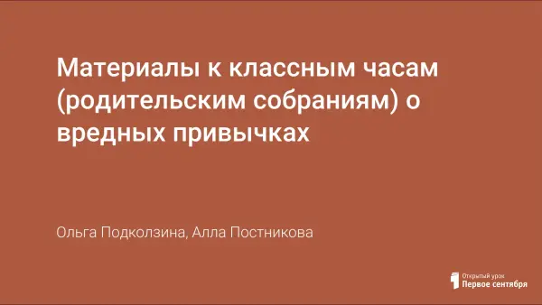 Материалы к классным часам (родительским собраниям) о вредных привычках