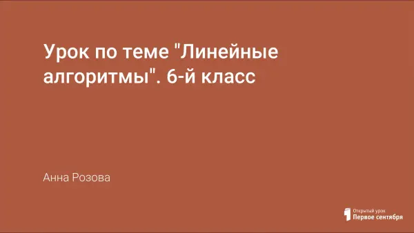 Представлен конспект урока введения понятия линейного алгоритма в 6-м классе. В качестве среды программирования для проведения практического занятия используется программа ЛогоМиры. Урок построен на основе учебника Макаровой для 6-го класса.