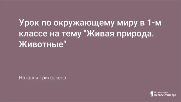 Цели урока: дифференцировать понятие "живая природа" на понятия "растения" и "животные", вывести детей на классификацию животных; расширять кругозор учащихся, создать условия для формирования мотивации к познанию и бережному отношению к природе.