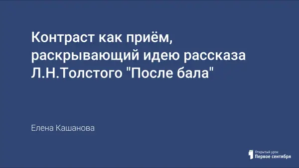 Урок литературы показывает учащимся, как прием контраста помогает раскрыть идею рассказа Л.Н. Толстого "После бала", раскрывает гуманистический пафос этого произведения.
