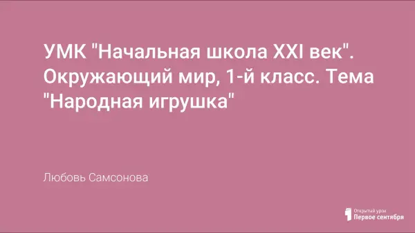 Урок знакомит детей с народной игрушкой. На уроке расширяются знания детей о возникновении и изготовлении народных игрушек. Задания, предлагаемые учащимся, способствуют развитию речи, воображения, мелкой моторики руки.