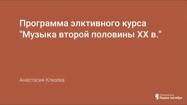 Программа элктивного курса "Музыка второй половины ХХ в."