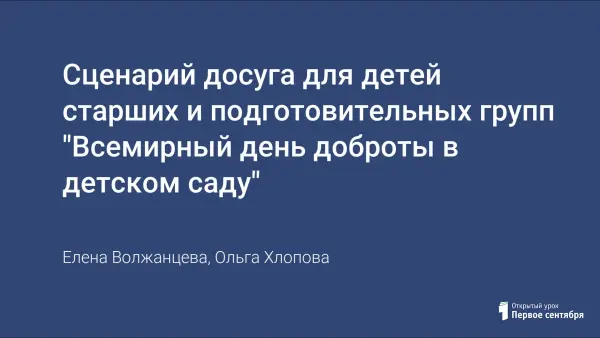 Сценарий досуга для детей старших и подготовительных групп "Всемирный день доброты в детском саду"