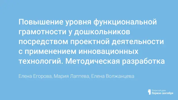 Повышение уровня функциональной грамотности у дошкольников посредством проектной деятельности с применением инновационных технологий. Методическая разработка