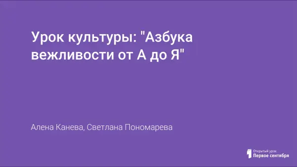 Урок культуры "Азбука вежливости от А до Я". Представлен материал, составленный для реализации направления шефской работы, то есть это занятие было проведено учениками-шефами – 11-го класса для подшефных 3-х и 7-х классов.