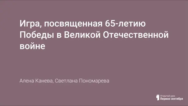 Игра, посвященная 65-летию Победы в Великой Отечественной войне