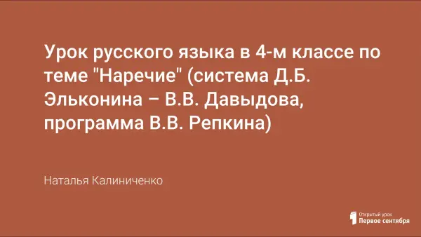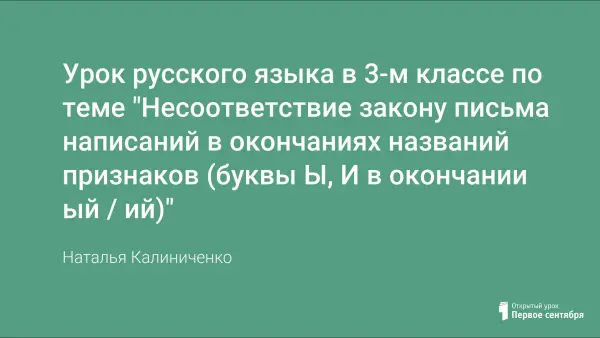 Цель работы – представить педагогам опыт разработки и проведения уроков "открытия" нового знания в системе развивающего обучения на материале изучения темы "Несоответствие закону письма написаний в окончаниях названий признаков".