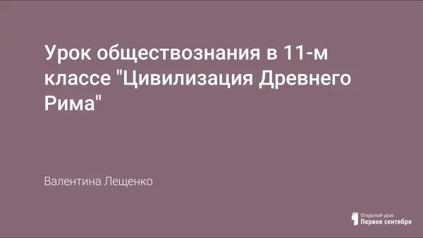 При изучении темы "Цивилизация Древнего Рима" используются различные приемы: работы с текстовым информационным материалом; работа с исторической картой; фрагмент художественного фильма; информация на электронных носителях; работа с текстом учебника; используется прием опережающего задания. Урок дает возможность отстаивать учащимся свои точки зрения на развитие древнеримской цивилизации; выявить сходства и различия в ценностях древнегреческой и древнеримской цивилизаций. Этот урок тесно связан с курсом истории.