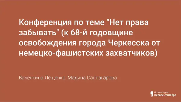 Конференция по теме "Нет права забывать" (к 68-й годовщине освобождения города Черкесска от немецко-фашистских захватчиков)
