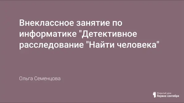 Внеклассное занятие "Детективное расследование "Найти человека" построено на деятельной основе с использованием приемов моделирования решения задачи в реальной жизни. Занятие носит практический характер и обеспечивает развитие познавательной деятельности, экологической сознательности и решение поставленных учебных задач. В результате дети обобщают знания по работе с разветвляющимися алгоритмами.