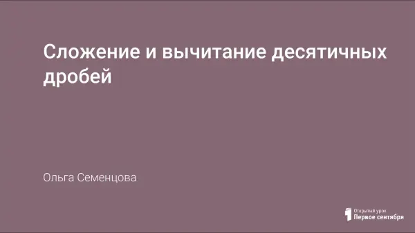 Цели урока – закрепление и усовершенствование навыков сложения и вычитания десятичных дробей; отработка навыков устного счёта; выработка умений по применению полученных знаний; проверка степени усвоения материала путем проведения теста с проверкой на уроке.