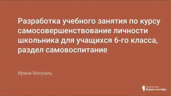 В ходе экспериментальной работы по внедрению технологии самосовершенствования личности для учащихся 5–9-x классов разработано тематическое планирование по курсу ССЛ, исходя из направлений воспитательной деятельности классных руководителей (обучение, интеллект; креативность; нравственная и гражданская зрелость; основы здорового образа жизни). Каждое направление соответствует определенному блоку, занятия по которому проводят социальный педагог, психолог, классный руководитель.
