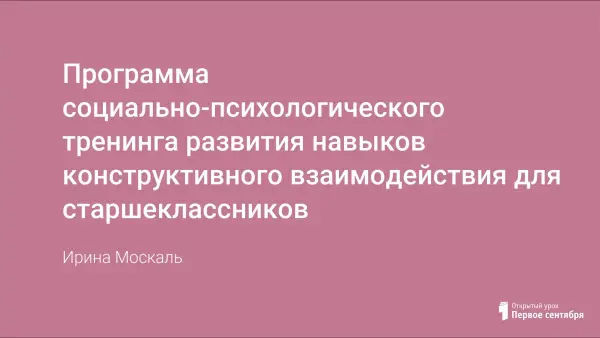 Программа социально-психологического тренинга развития навыков конструктивного взаимодействия для старшеклассников и разработка первого занятия.