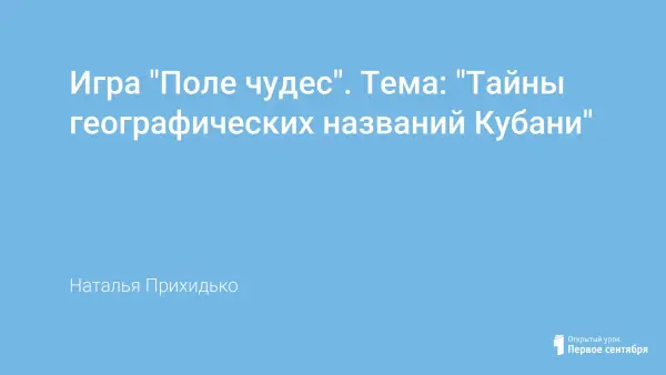 Цели игры: расширить кругозор и дать новые знания из истории географических названий Краснодарского края; воспитывать интерес к истории края, формировать чувство патриотизма, стимулировать волю к победе и навыки толерантности.