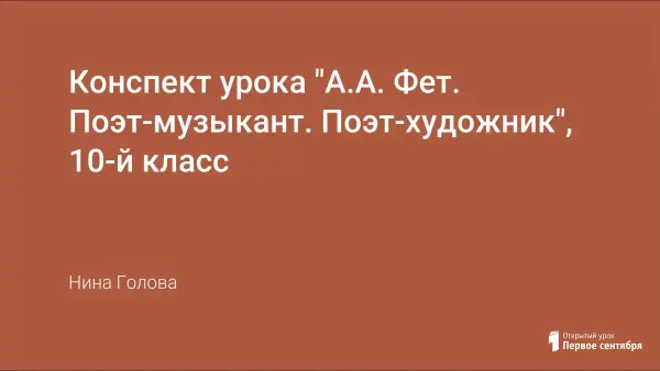 Урок на тему «Особенность поэтического таланта А.Фета» – интегрированный урок, цель которого – нахождение связей между фактами, которые подтверждают и углубляют выводы, наблюдения учащихся в области литературы, музыки и живописи.