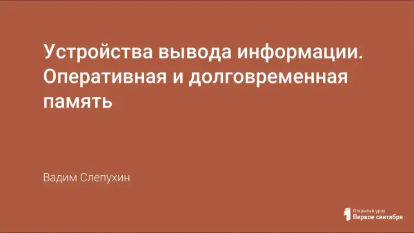 Представлен урок для учащихся 8-го класса с презентацией. Учащиеся знакомятся с устройствами вывода информации, оперативной и долговременной памятью, с их назначением, основными функциями, характеристиками и принципами работы.