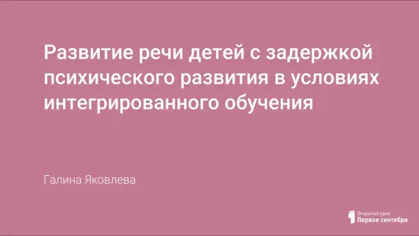 В статье "Развитие речи детей с ЗПР в условиях интегрированного обучения" автор раскрывает основные направления работы по развитию речи детей с особыми образовательными потребностями в условиях интегрированного обучения; показывает важность применения особых коррекционно-педагогических методов и приёмов воздействия при обучении таких детей. Также автор даёт практические советы по использованию упражнений на развитие звукопроизношения и фонематического слуха, обогащение словарного запаса и др.