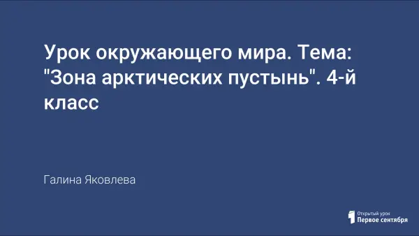 Цель урока: познакомить детей с особенностями живой и неживой природы арктических пустынь.