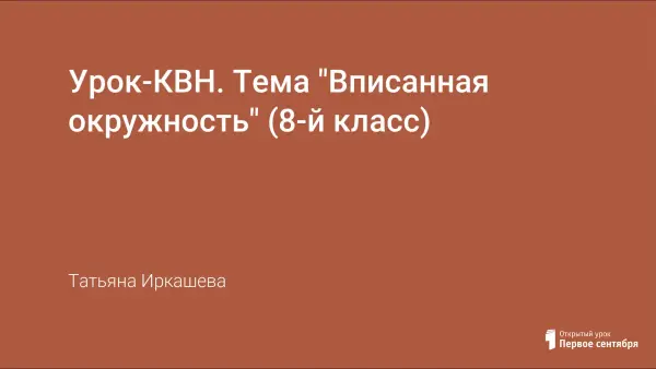 Предлагается урок-КВН, который можно провести как урок закрепления изученного материала по геометрии "Вписанная окружность". В процессе игровой деятельности у школьников повышается интерес к предмету, происходит развитие познавательных процессов, закрепляются знания, приобретаемые на уроках, расширяется кругозор.