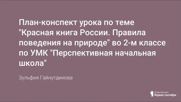 План-конспект урока по теме "Красная книга России. Правила поведения на природе" во 2-м классе по УМК "Перспективная начальная школа"