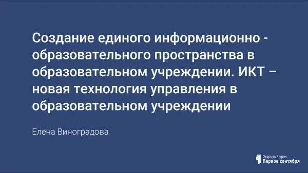 ИКТ – новая технология управления, влияющая на все стороны жизни школы, всего образовательного учреждения. В основу структуры единого информационного пространства можно предложить три составляющие: «неэлектронное» образовательное пространство; Интранет – внутренняя локальная сеть; Интернет – доступ к информации, размещенной в мировой сети. Большая часть имеющейся информации ОУ должна быть переведена на электронные носители. Необходимо формирование контрольно-измерительных материалов по классам, темам, предметам.