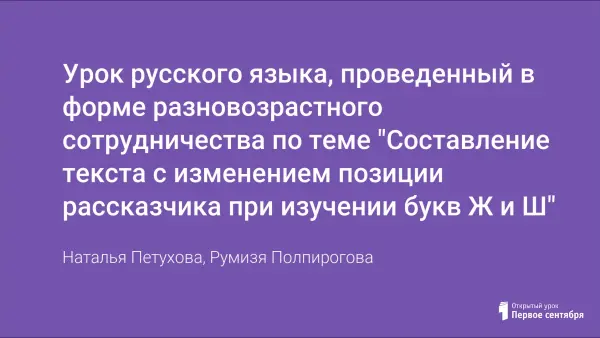 Урок русского языка, проведенный в форме разновозрастного сотрудничества по теме "Составление текста с изменением позиции рассказчика при изучении букв Ж и Ш"