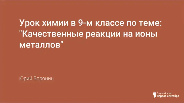 Целью данного урока является изучение качественных реакций на ионы металлов и методов их распознавания. Для определения берутся те ионы металлов, которые были изучены в данной теме. Данный материал можно изучать и при рассмотрении определенного иона в теме "Металлы", но я считаю, что изучение качественных реакций на отдельном уроке позволяет показать систему распознавания ионов и таким образом способствовать развитию логического мышления учащихся. Урок проходит перед практической работой по теме "Металлы", что является определенной подготовкой учащихся к выполнению практической работы. На уроке применяются алгоритмы для выработки умений и навыков определения веществ, содержащих различные ионы металлов.