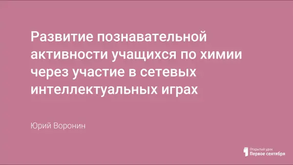 В статье представлена сетевая интеллектуальная игра по химии. Игра рассчитана на участие нескольких команд из разных образовательных учреждений муниципалитета (города). От одной школы количество команд не ограниченно (при условии нахождения участников разных команд в разных помещениях школы).
