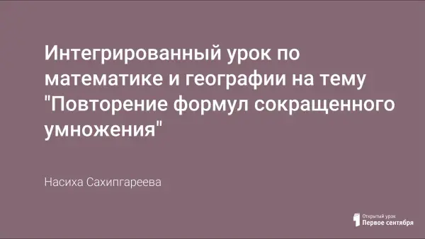Интегрированный урок (математика + география) рассчитан на обобщение и систематизацию знаний и умений учащихся применять формулы сокращенного умножения,