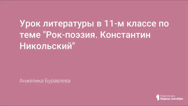 Урок проводится на заключительном этапе изучения синкретических направлений современной поэзии (авторская песня и рок-поэзия). Включение такой темы, как "Рок-поэзия", в программу 11-го класса вызывает недоумение у многих филологов. Но вот ученикам старших классов эта тема наиболее близка и понятна. Они сами активно готовят материалы о своих любимых рок-музыкантах, анализируя тексты песен.