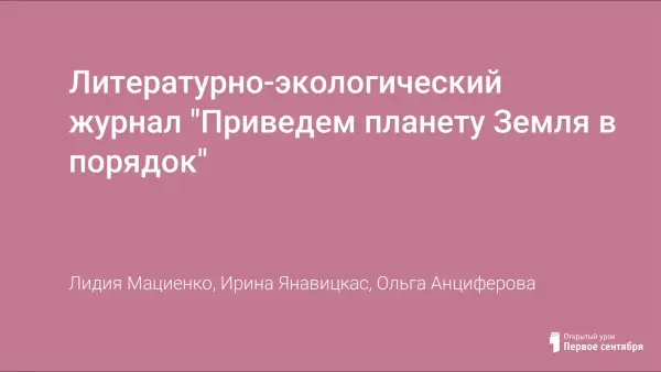 Для человека природа - среда жизни и источник существования. Человек своей жизнедеятельностью влияет на природную среду. Вносимые человеком изменения в природу превратились в угрозу. Сегодня человечество озабочено исправлением своих ошибок. Это единственно правильный путь, чтобы обеспечить дальнейшее существование людей на Земле. Поэтому будущее общество должно быть обществом экологически грамотных людей. Экологическое образование начинается в школе, поэтому наше мероприятие - призыв к человечеству.