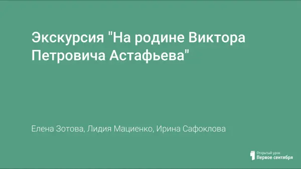 В рамках регионального компонента в нашей школе проводится устный литературный журнал "Диалоги с В.П. Астафьевым". В 6-х классах литературный час назывался "Природа и мы" (по рассказам "Белогрудка", "Слезы тигра" и др.). В 7-х – "Защищая мир, они защищали будущее" (рассказ "Сибиряк"). В 8-х – "На Часовенной горке" (рассказ "Далёкая и близкая сказка"). Эпиграфом к страницам литературного журнала стали слова В.П. Астафьева: "Всему свой час и всякому делу под небесами..."