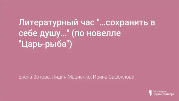 Литературный час "…сохранить в себе душу…" (по новелле "Царь-рыба")