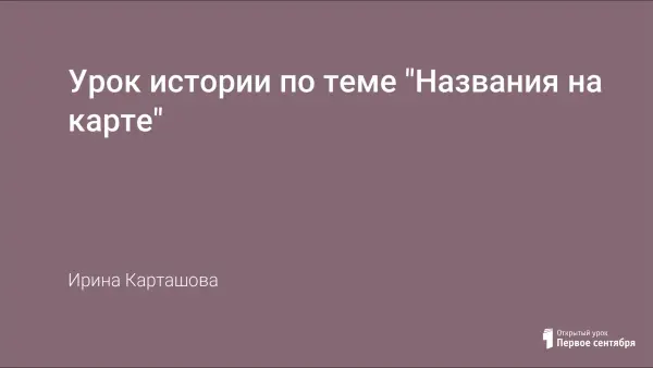 Модернизация образования требует изменения методов обучения, увеличения веса тех из них, которые формируют практические навыки анализа информации, самообучения. Урок по теме "Названия на карте" показывает возможности использования метода исследования для формирования знаний, умений и навыков. Работа в группе способствует развитию коммуникативных способностей. Привлечение художественной литературы - повышению мотивации обучения и познавательной активности учащихся.