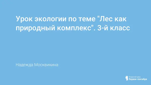 Представлен урок экологии в 3-м классе. На уроке показана взаимосвязь различных компонентов леса и почему лес, как природный комплекс, может погибнуть из-за исчезновения одного из его звеньев.