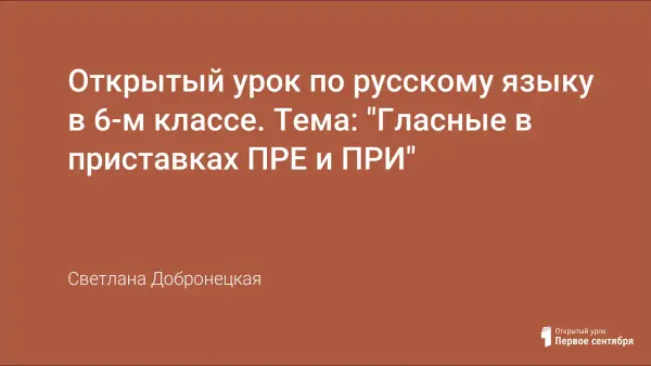 Урок знакомит с правописанием гласных в приставках ПРЕ и ПРИ с опорой на значение этих приставок и с письменным объяснением орфограммы. Используются таблички, карточки, карточки-схемы, опорные карты, рисунки, иллюстрирующие правило, материал из книги Г.Г. Граника и др. «Секреты орфографии».