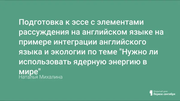 В статье описана подготовка к эссе с элементами рассуждения (ЕГЭ – высокий уровень сложности). Эссе на тему использования ядерной энергии завершает цикл уроков "Источники энергии". Эссе обобщает знания по теме "Источники энергии", развивает умение высказывать и аргументировать свое мнение, готовит к письменному заданию высокого уровня ЕГЭ.