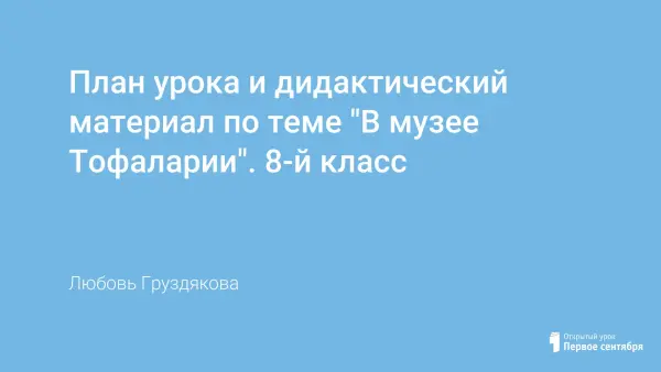 План урока и дидактический материал по теме "В музее Тофаларии". 8-й класс