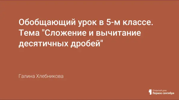 На уроке обучающиеся повторяют и обобщают правила сложения, вычитания, округления десятичных дробей, закрепляют навыки работы с десятичными дробями. Используют игровые формы, самостоятельную работу.