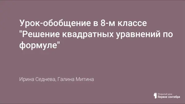 Урок-обобщение в 8-м классе "Решение квадратных уравнений по формуле"