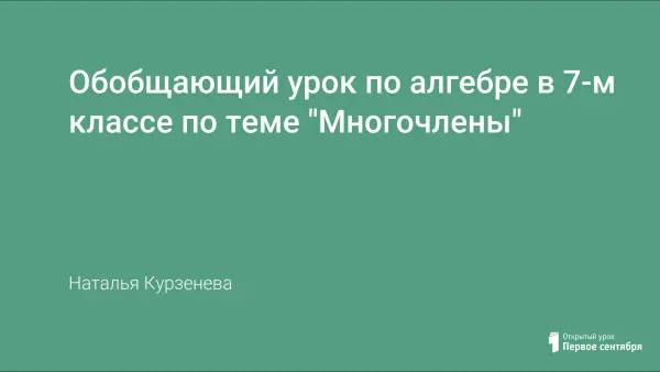 Представлен коспект урока математики в 7-м клаасе по теме: "Многочлены".