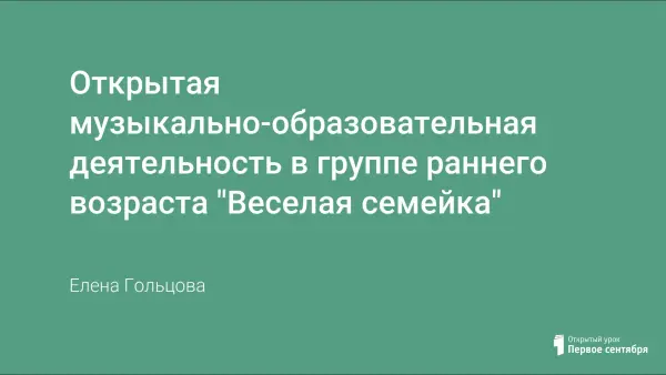 Открытая музыкально-образовательная деятельность в группе раннего возраста "Веселая семейка"
