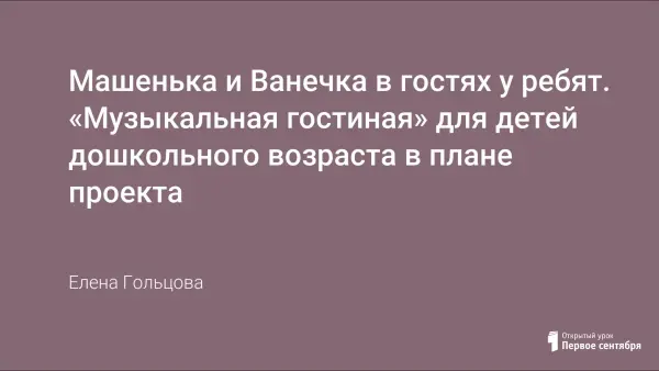 Машенька и Ванечка в гостях у ребят. «Музыкальная гостиная» для детей дошкольного возраста в плане проекта
