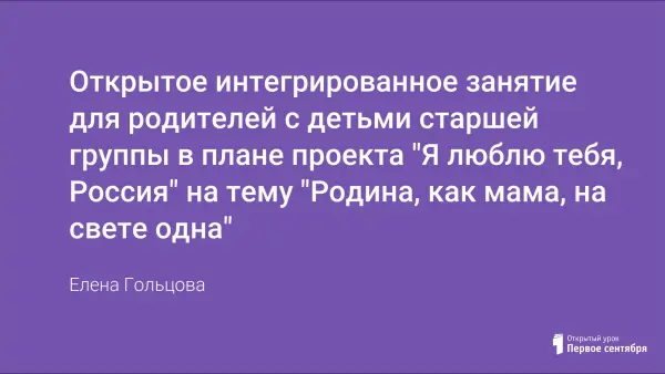 Открытое интегрированное занятие для родителей с детьми старшей группы в плане проекта "Я люблю тебя, Россия" на тему "Родина, как мама, на свете одна"